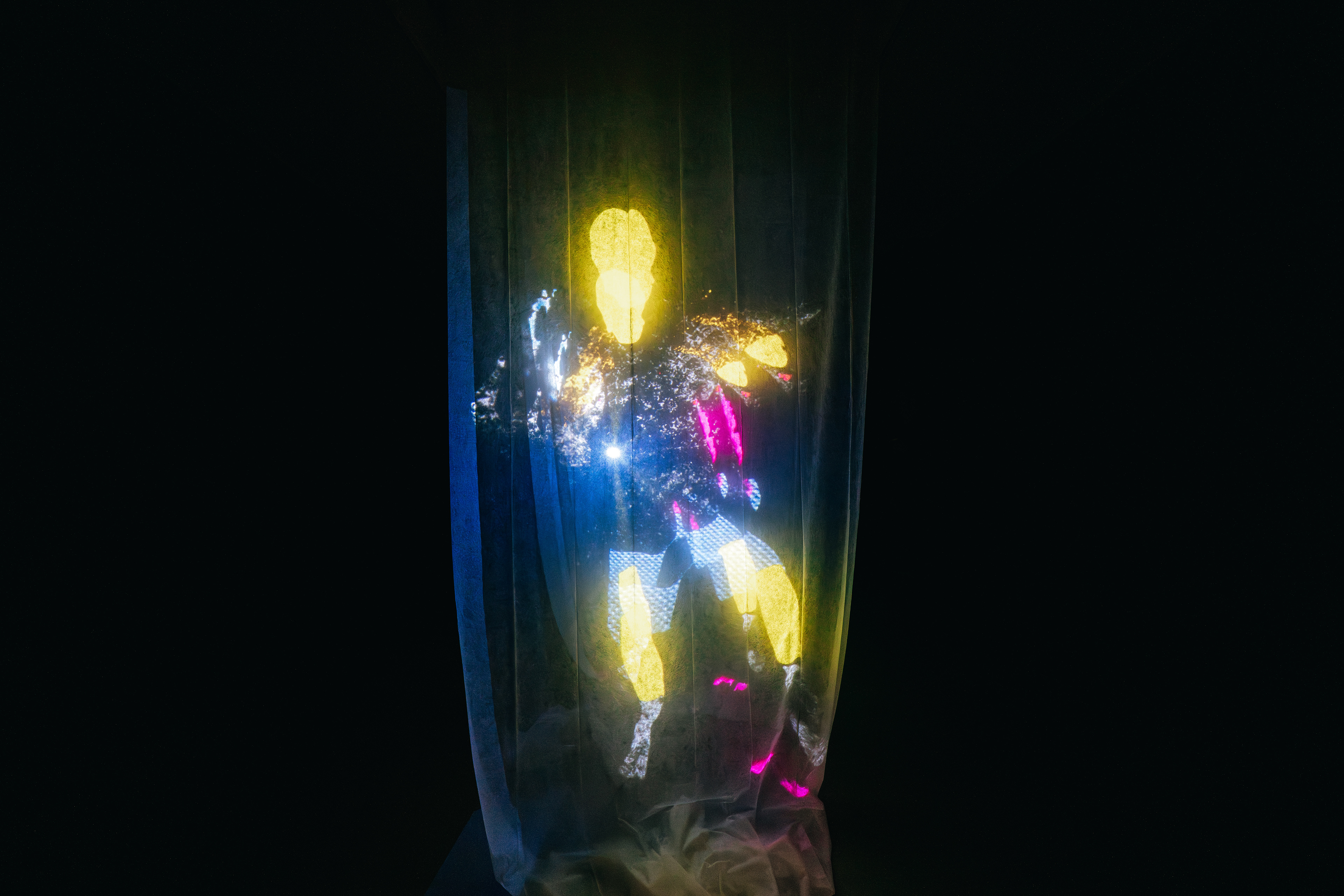 Site specific A/V installation: projection on tulle fabric - 7':35" video, sound composed by Francesco Liede Roccati