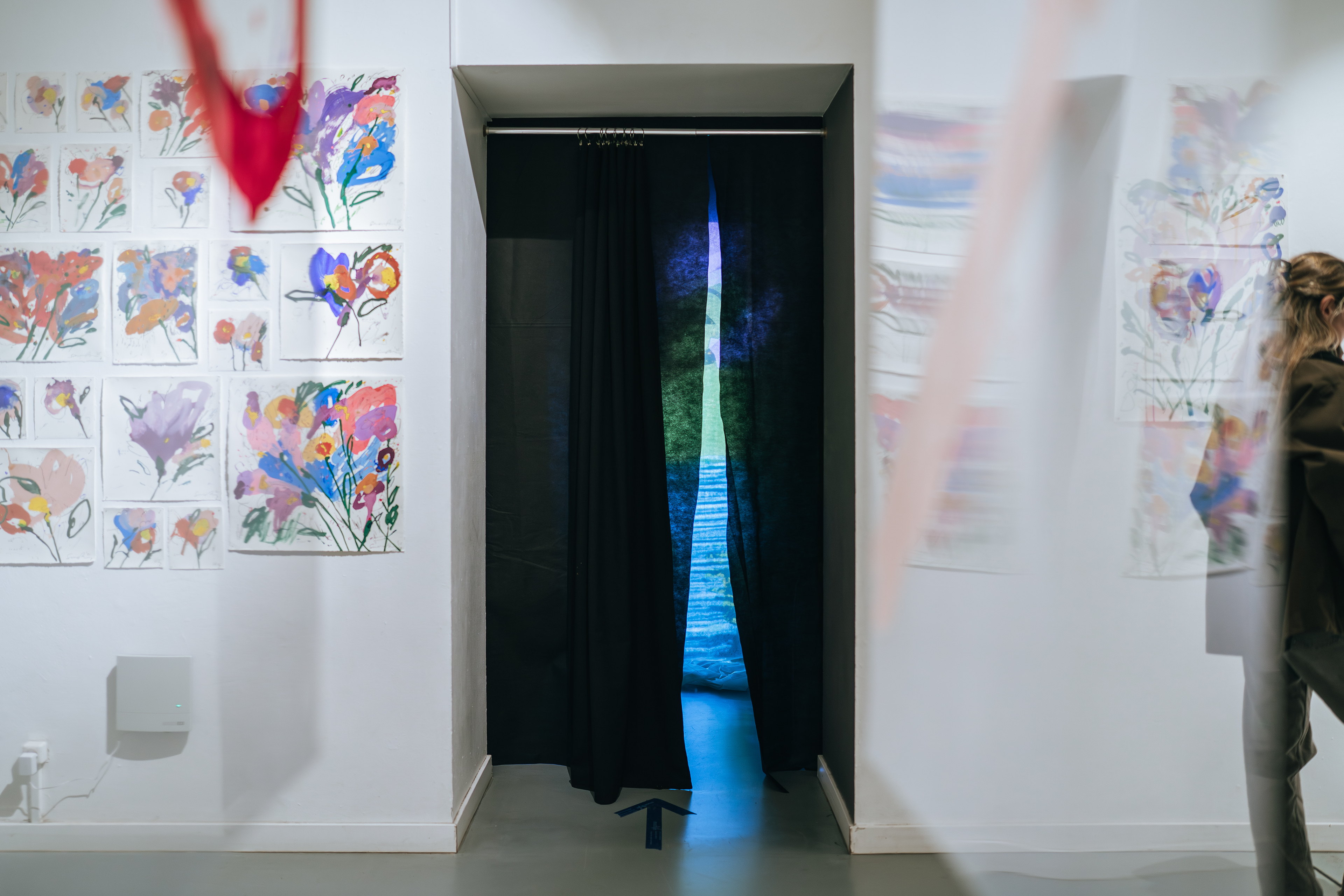 On walls paper works. All the room speaks is a reflection on the freedom of gesture, the impermanence of form, and the need to shift perspective in order to perceive unity.